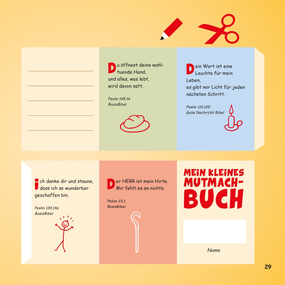 Gleichzeitig greift die Familien-Mitmach-Bibel wichtige Themen auf, die im Alltag der Kinder eine große Rolle spielen. Die biblischen Geschichten thematisieren Trauer und Freude, Angst und Mut sowie Streit und Versöhnung und sind damit ein wertvoller Begleiter beim Aufwachsen von Kindern. Enthalten sind insgesamt 20 Bibelgeschichten aus dem Alten und Neuen Testament.