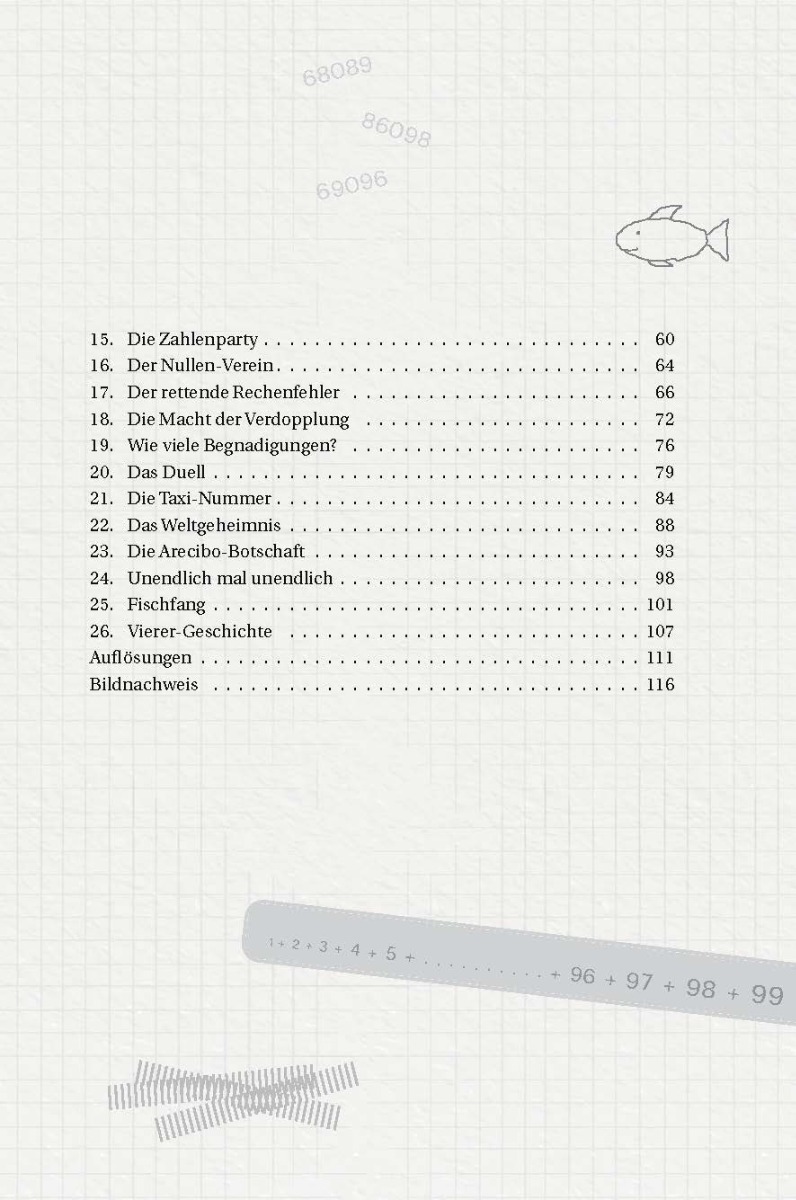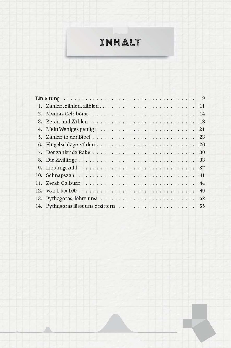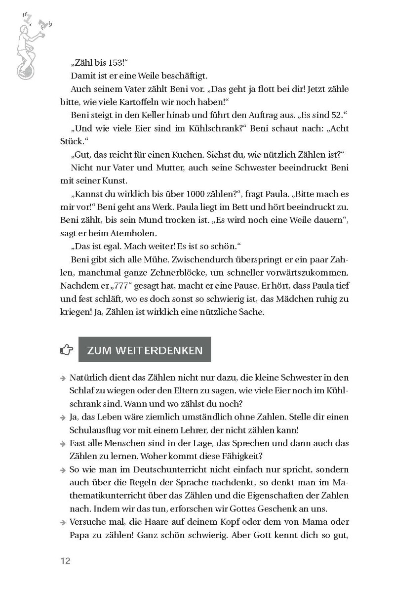 <p>Begib dich auf eine spannende Reise in die Welt der Zahlen und der Rechenkünste! Wusstest du z. B., dass Raben zählen können? Und hast du eine Ahnung, was sich hinter der Zahl 153 in der Bibel alles verbirgt? Und wie man sich mit Rechentricks jede Menge Arbeit sparen kann? <br />Denkanstöße, interessante Infos zu bekannten Zahlengenies, anschauliche Grafiken und jeweils ein Gebet am Ende machen diese kurzen Texte zu etwas ganz Besonderem! <br />Sie zeigen: Zahlen können uns auch etwas über Dinge sagen, die auf den ersten Blick nichts mit Mathematik zu tun haben!<br />Für Schüler ab der Unterstufe, zum individuellen Lesen, aber auch in der Gruppe geeignet.</p>