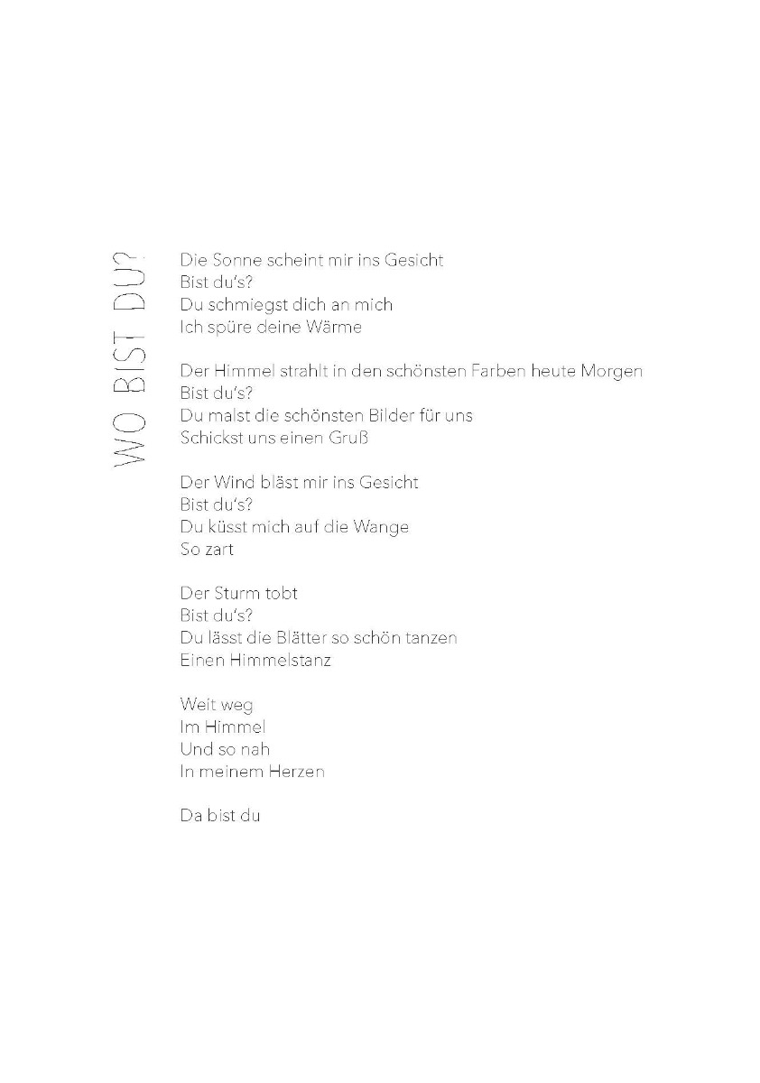 Wie fühlt man sich, wenn man ein Kind verloren hat? Christine Heinzmann hat in diesem Buch ihre Gefühle und Gedanken in Bezug auf den Tod ihrer Tochter festgehalten. Trauernden Worte zu geben und Außenstehenden einen kleinen Einblick