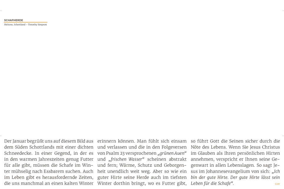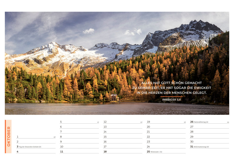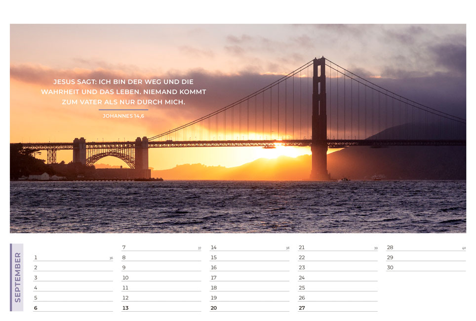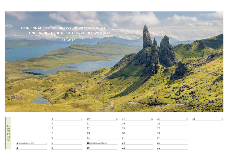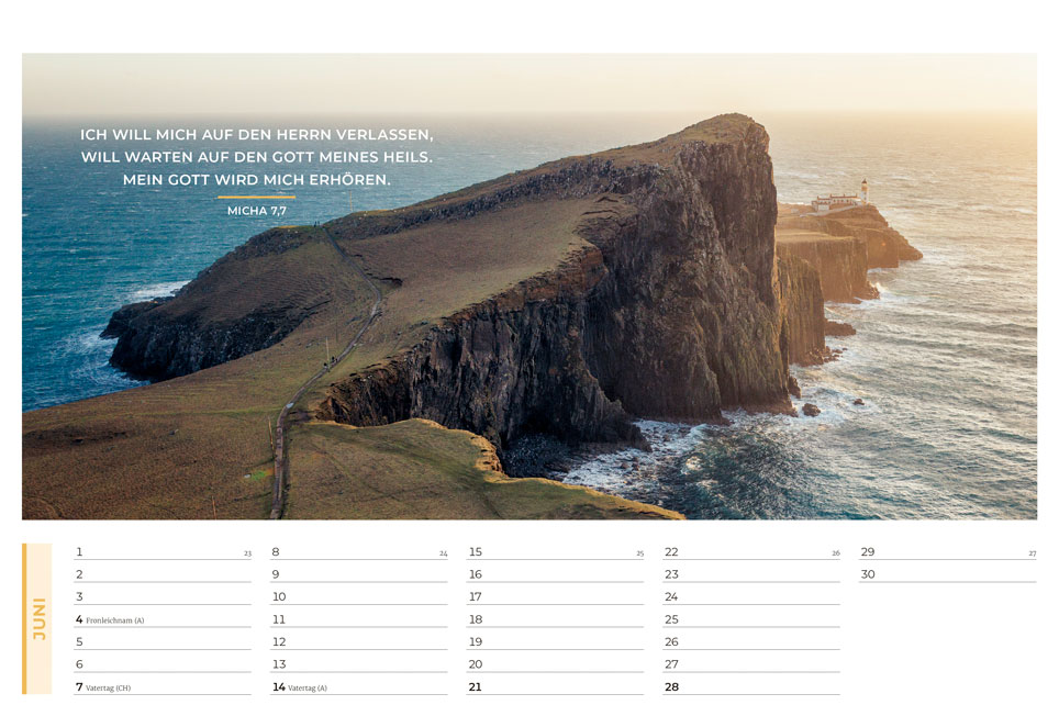 Der evangelistische Wand- und Tischkalender mit tollen Fotos! Ideal zum Weitergeben in großer Stückzahl oder zu Weihnachten Mit Hoffnung und Mut machenden Bibelversen sowie evangelistischen Texten auf der Rückseite jedes Kalenderblattes Am Ende des Kalenders wird erklärt, wie man eine Beziehung zu Gott bekommt Grußkarten-Funktion der Monatsblätter durch beschreibbare Rückseite.