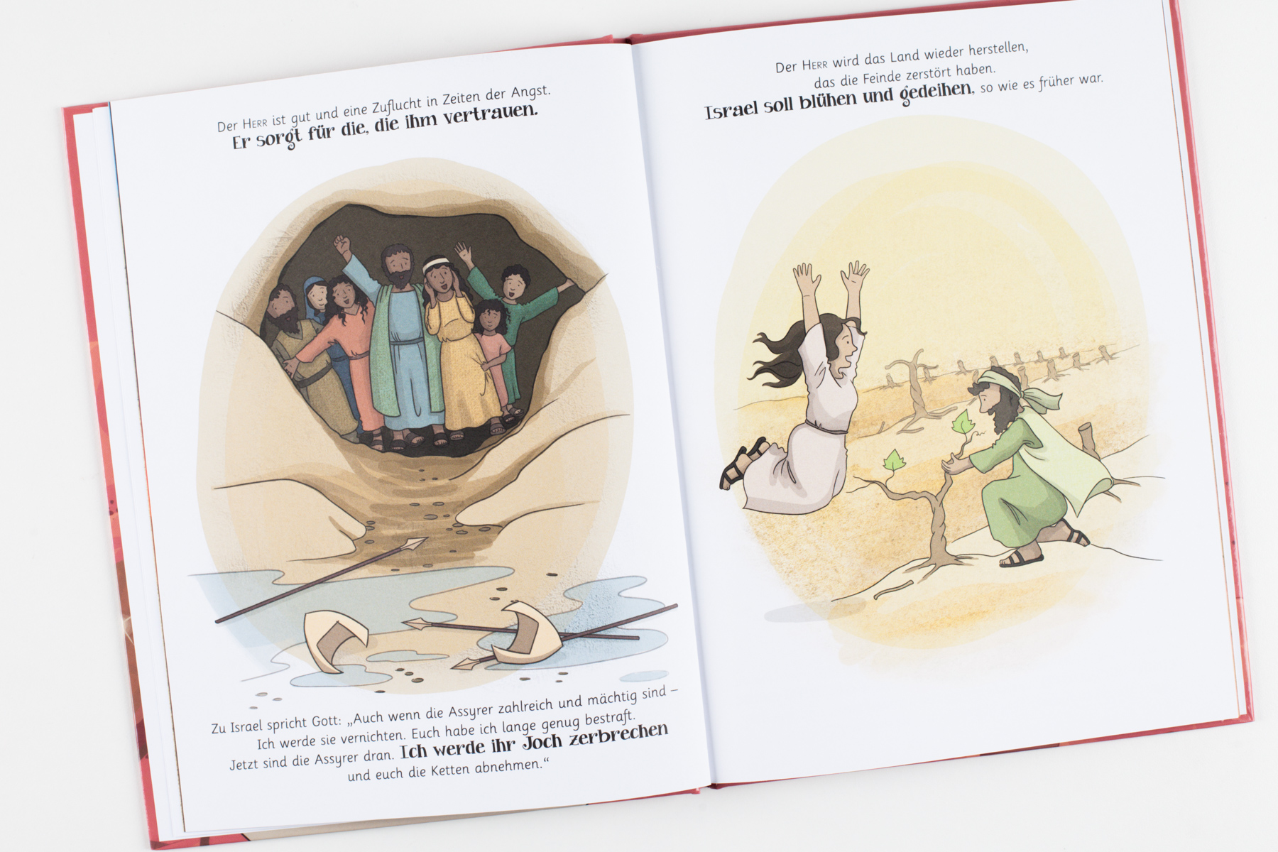 Gott ist gut, eine starke Zuflucht in Zeiten der Not. Er sorgt für diejenigen, die auf ihn vertrauen. Aber seine Feinde wird er hinwegfegen und in die Finsternis treiben. Im Buch Nahum verspricht Gott, die Assyrer zu bestrafen, die Israel unterdrückt hatten. Ihre Hauptstadt Ninive war voller Mord und Lügen, und deshalb zerstört Gott sie.