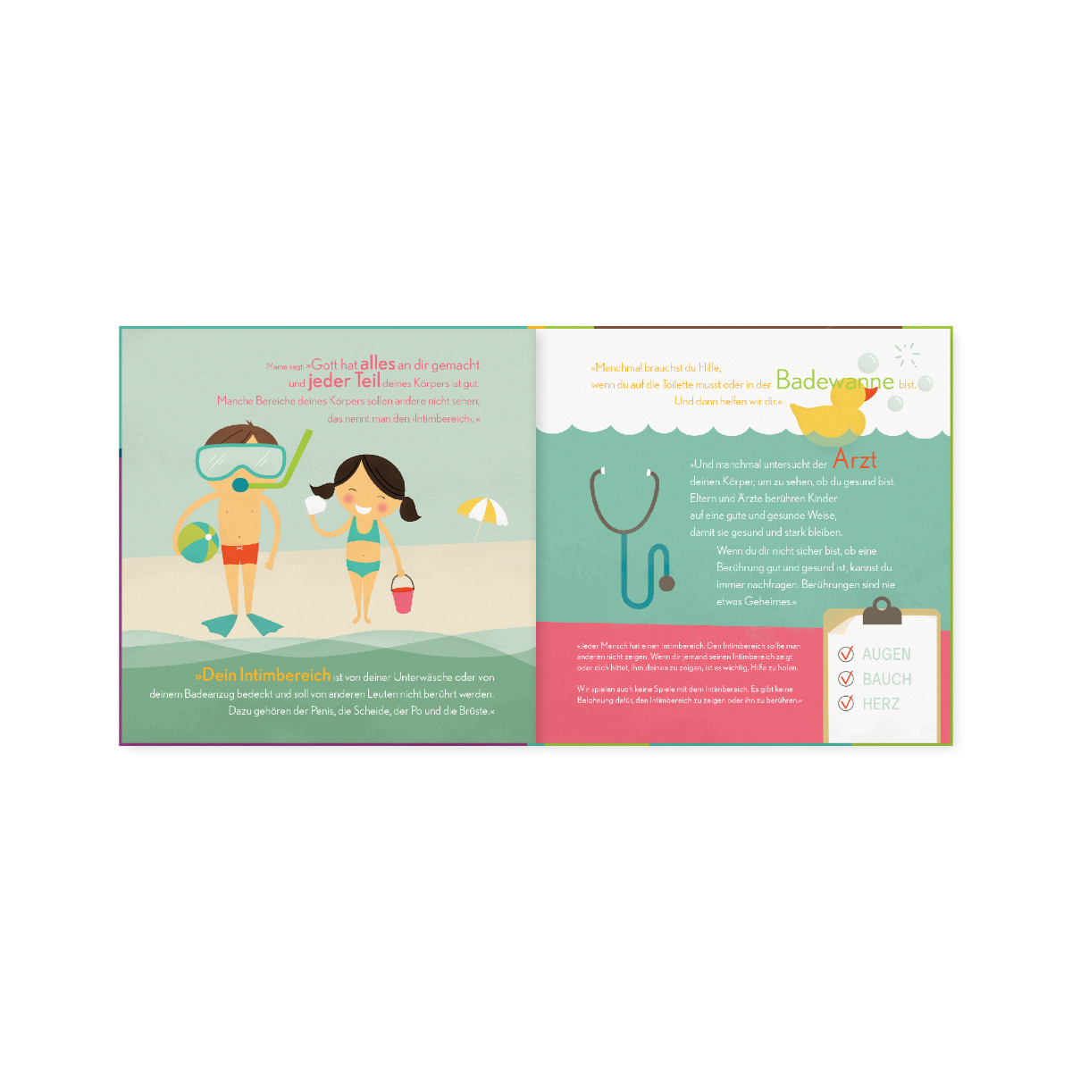 Durch eine behutsame Sprache und ansprechende Illustrationen ermöglicht das Buch Eltern, mit den eigenen Kindern über die sensiblen Körperzonen zu sprechen, ohne dabei ungesunde Scham und Unsicherheit zu provozieren.