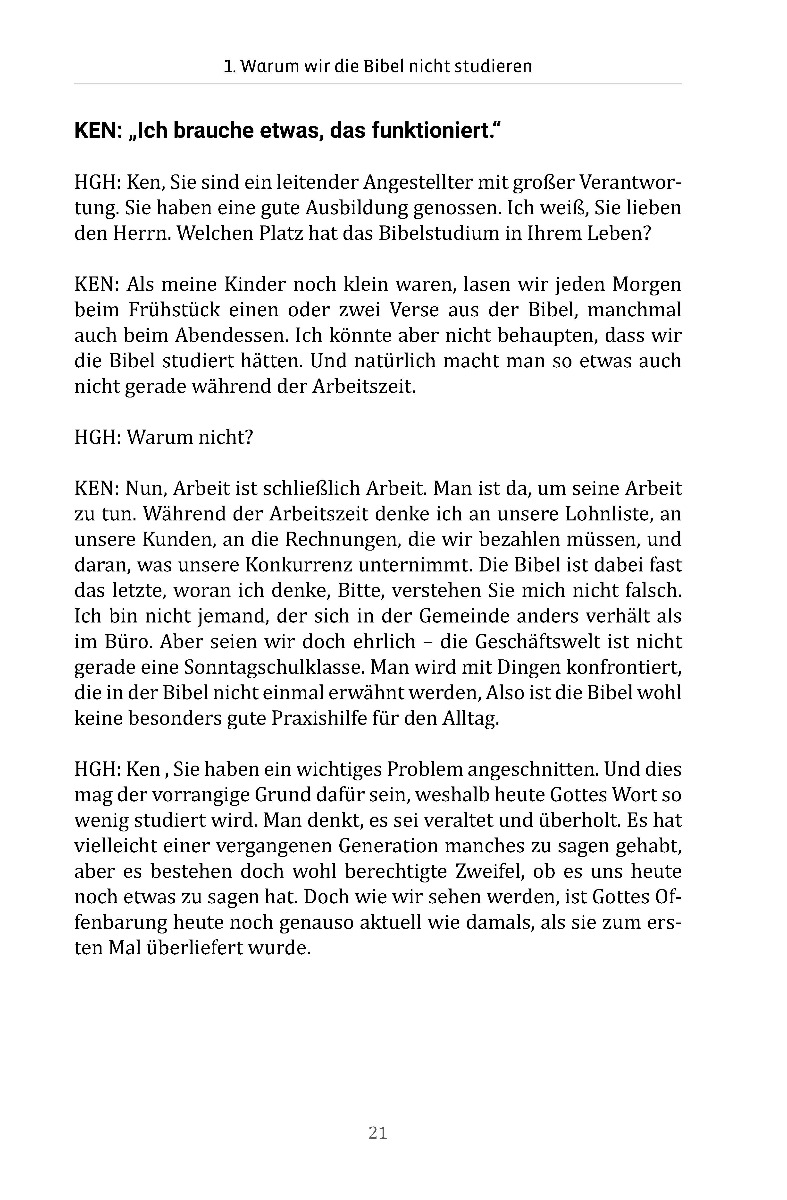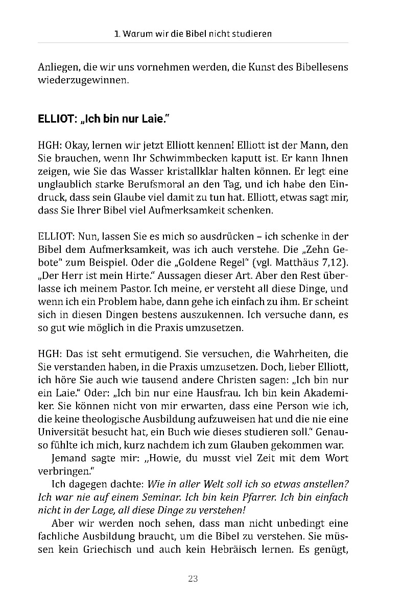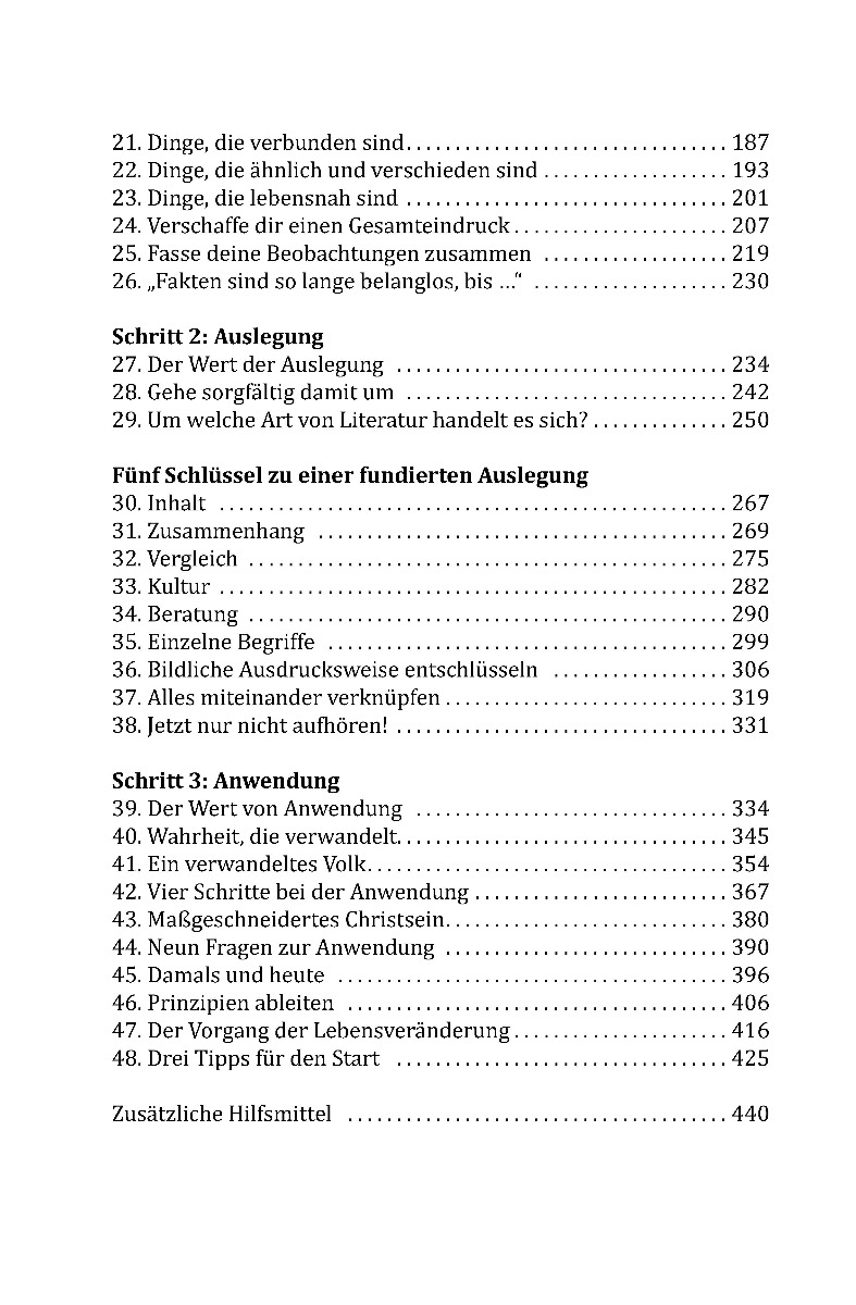 Die Autoren zeigen auf eine sehr lockere Weise und mit vielen praktischen Beispielen, wie man lernt, die Bibel möglichst effektiv zu lesen, um Tag für Tag praktischen Nutzen und reichen Gewinn davon zu haben. Dieses Buch hat sich über die Jahre in der Praxis bewährt. Für viele ist es zum Anstoß für ein lebendiges und fruchtbares Bibellesen und Studieren geworden.