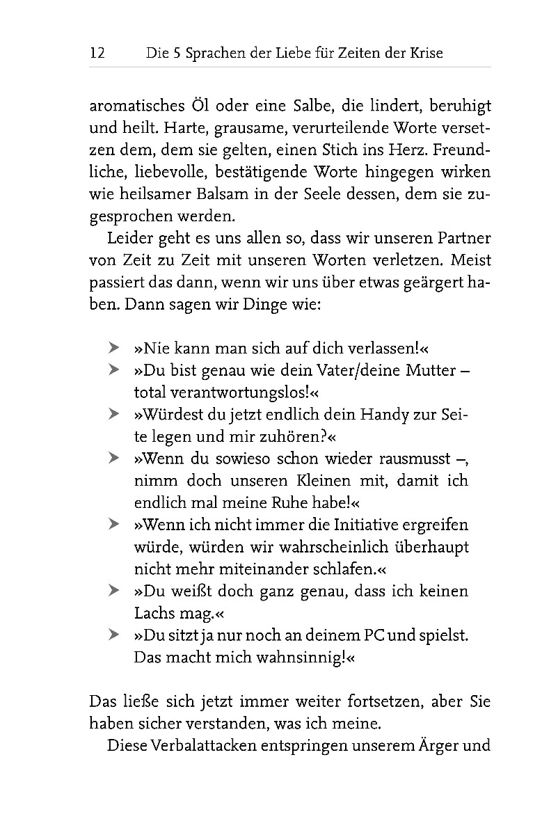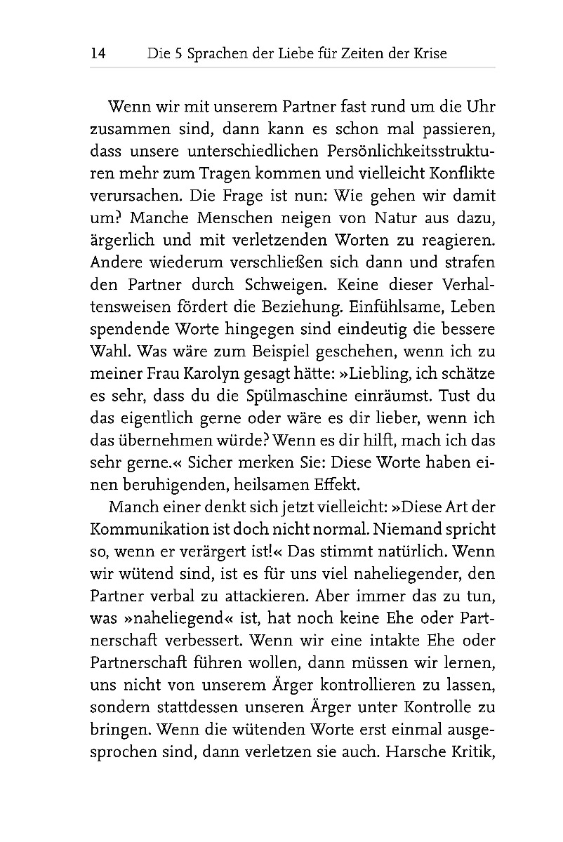 Die COVID-19-Pandemie hat unser Leben schlagartig verändert. Plötzlich verbringen wir als Paare bzw. Familien sehr viel mehr Zeit miteinander - ob gewollt oder ungewollt. Dabei tu n sich oft ungeahnte Konflikte auf - oder es hält gähnende L angeweile Einzug. Und mit einem Mal fragen wir uns: Ist das wirklich die Beziehung, die wir führen möchten? Passen wir ü berhaupt noch zusammen? - Beziehungsexperte Gary Chapman hä lt eine befreiende Botschaft für uns bereit: Wenn in der Kr das völlig normal. Und er gibt uns 5 einfach umzusetzende T ipps, wie wir unsere Partnerschaft inmitten der aktuellen Um stände verbessern können.