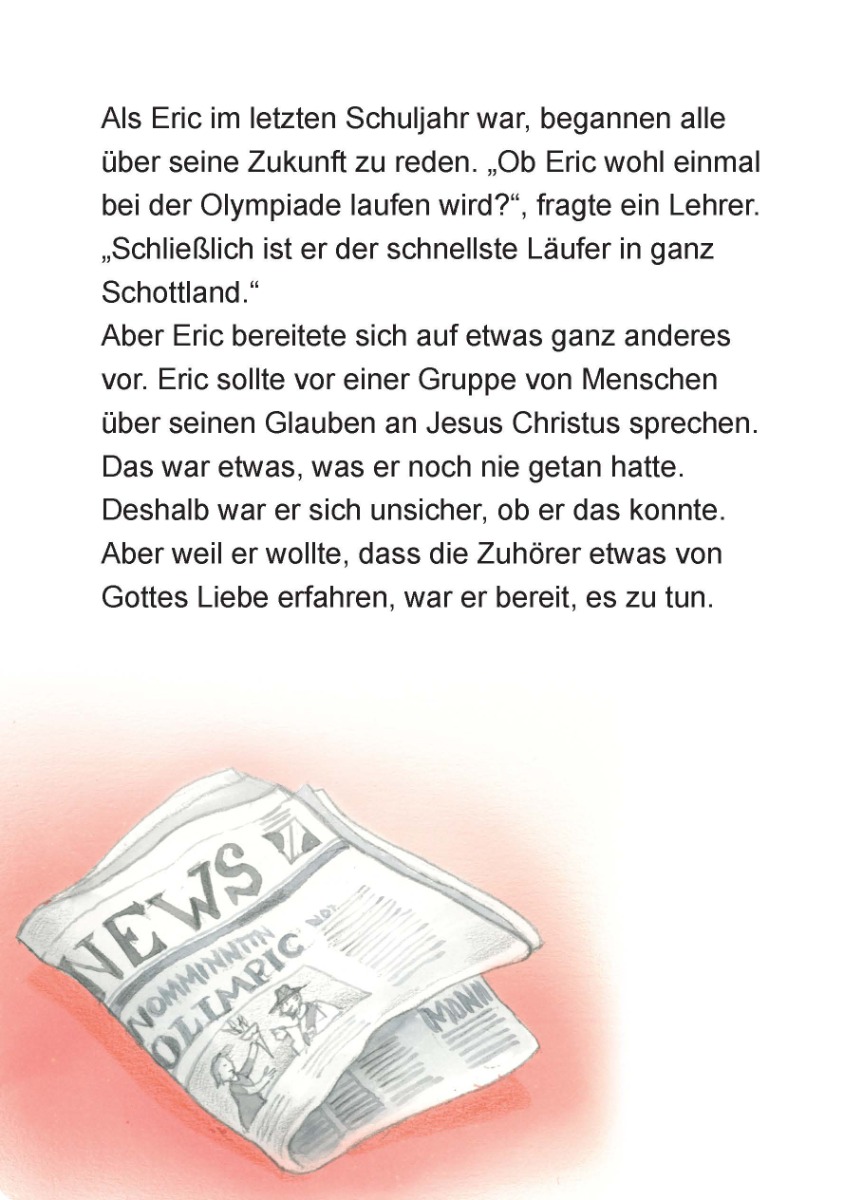 Als Eric Liddell sich bei der Olympiade 1924 weigerte, seinen Lauf an einem Sonntag anzutreten, schien es das Aus für ihn zu sein. Doch einige Tage später gewann er Gold und stellte einen neuen Weltrekord auf. Sein Vorbild zeigt, wie Gott das Bekenntnis zu ihm und seinem Wort segnet. Die große Schrift ist ideal für Leseanfänger.